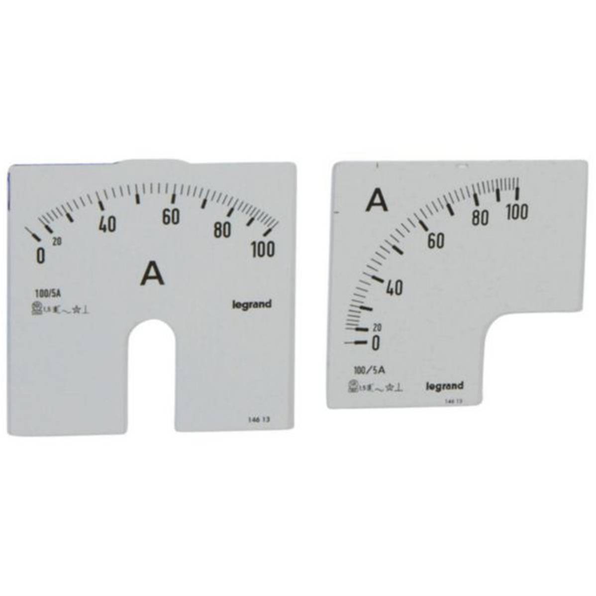 Cadrans de mesure pour ampèremètre analogique 0A à 100A - 1 cadran pour fût rond et 1 cadran pour fût carré - Legrand 014613