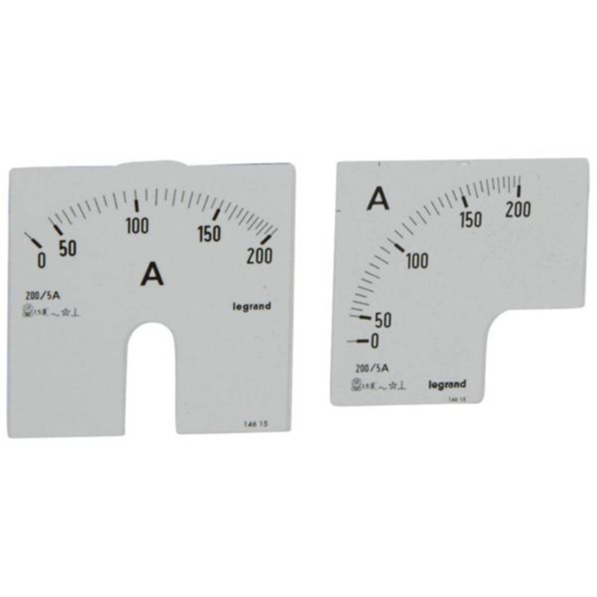 Cadrans de mesure pour ampèremètre analogique 0A à 200A - 1 cadran pour fût rond et 1 cadran pour fût carré - Legrand 014615