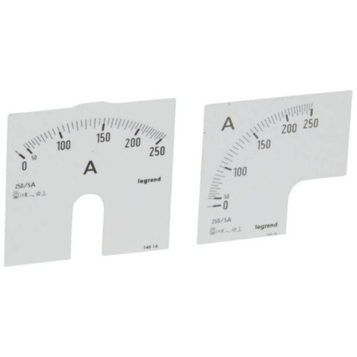 Cadrans de mesure pour ampèremètre analogique 0A à 250A - 1 cadran pour fût rond et 1 cadran pour fût carré - Legrand 014616
