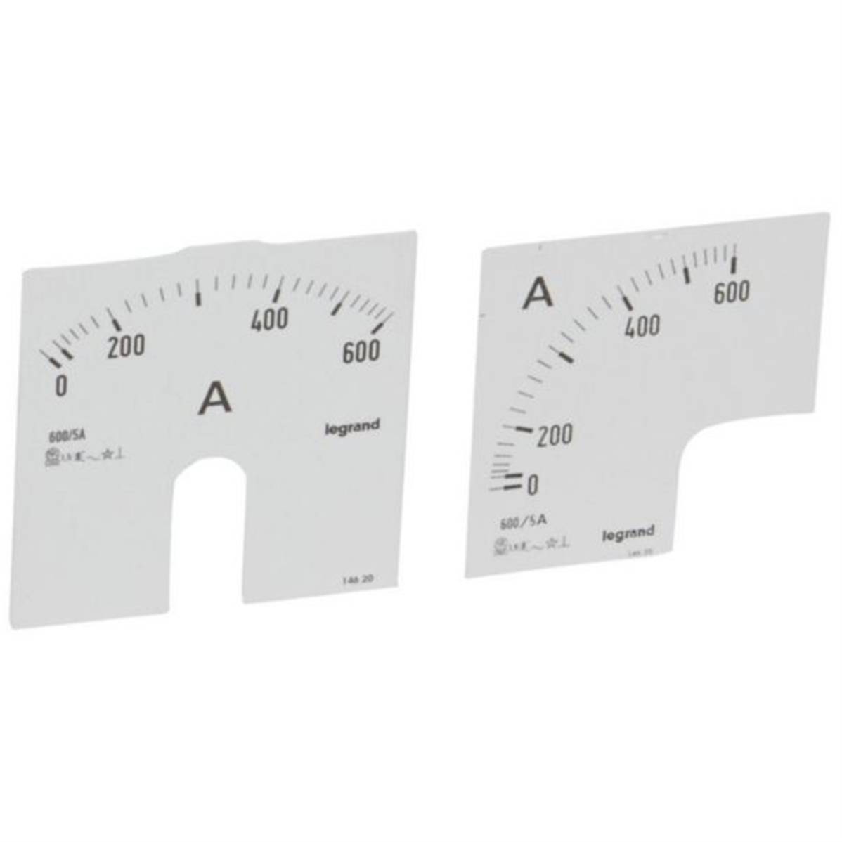 Cadrans de mesure pour ampèremètre analogique 0A à 600A - 1 cadran pour fût rond et 1 cadran pour fût carré - Legrand 014620