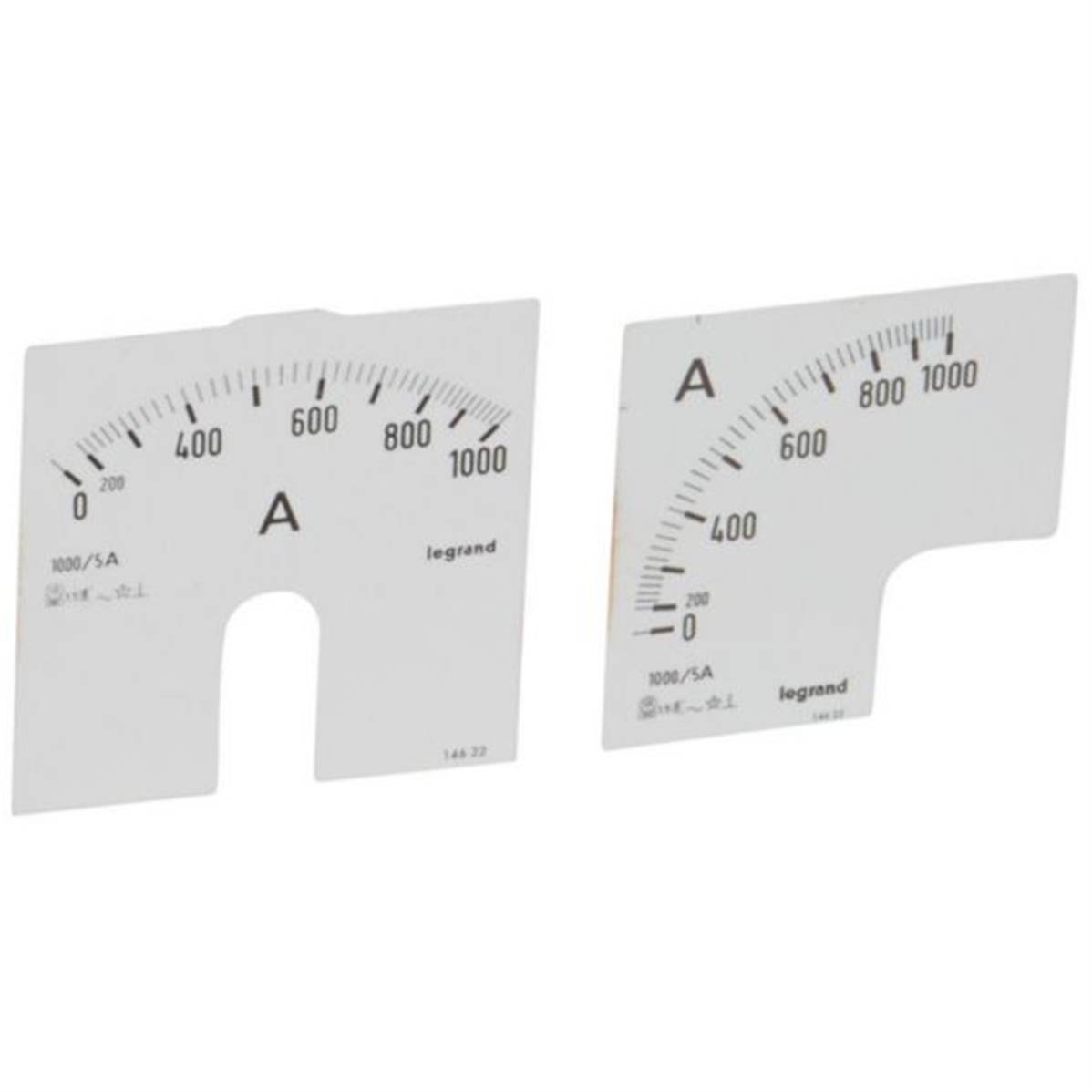 Cadrans de mesure pour ampèremètre analogique 0A à 1000A - 1 cadran pour fût rond et 1 cadran pour fût carré - Legrand 014622