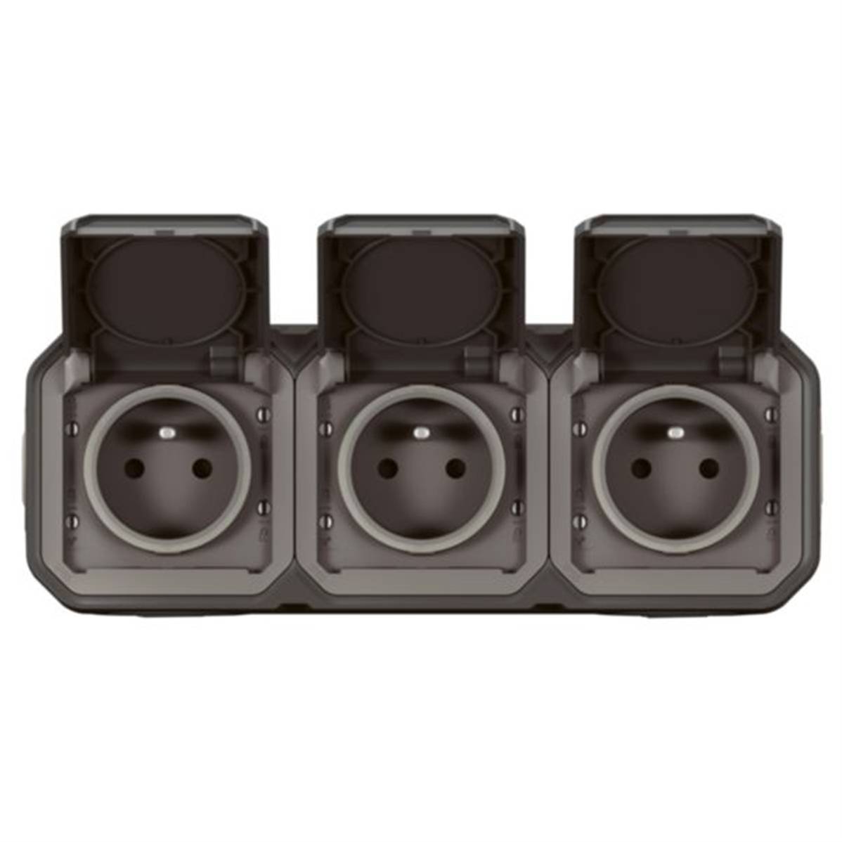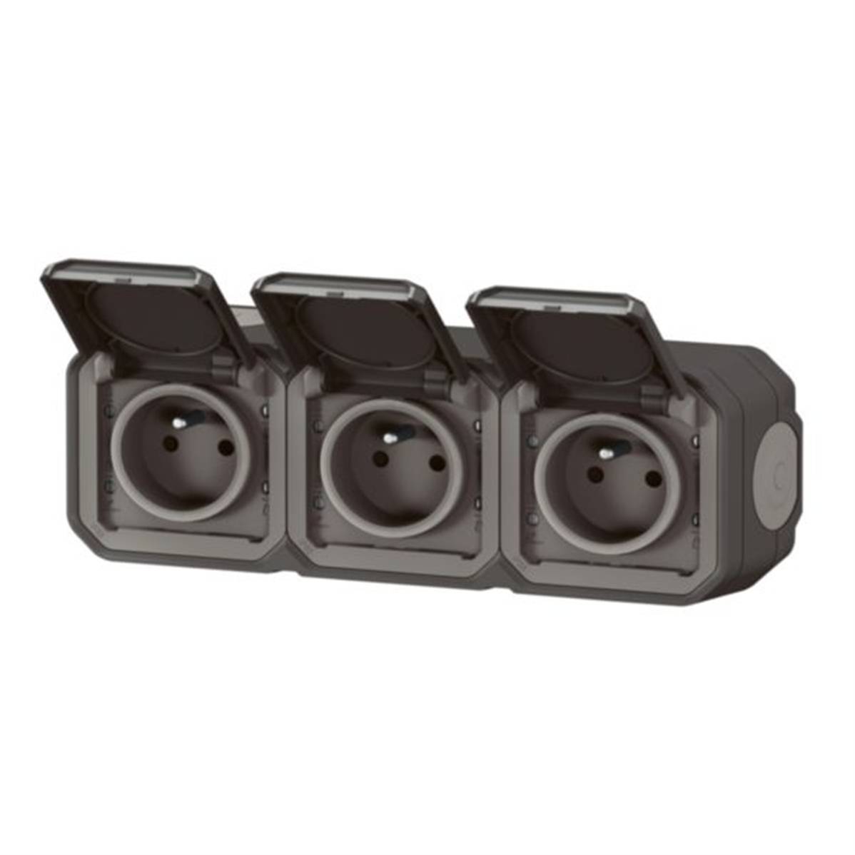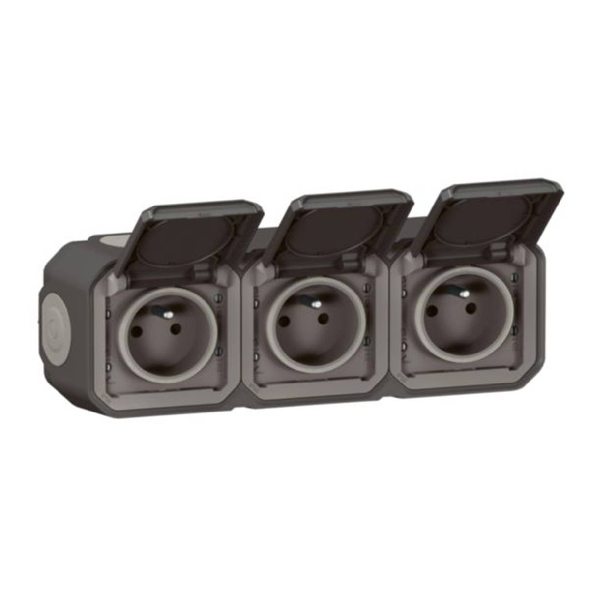 Prise de courant 3x2P+T étanche Plexo 16A 250V IP55 IK08 livrée complète pour fixation saillie - Anthracite - Legrand 069766L