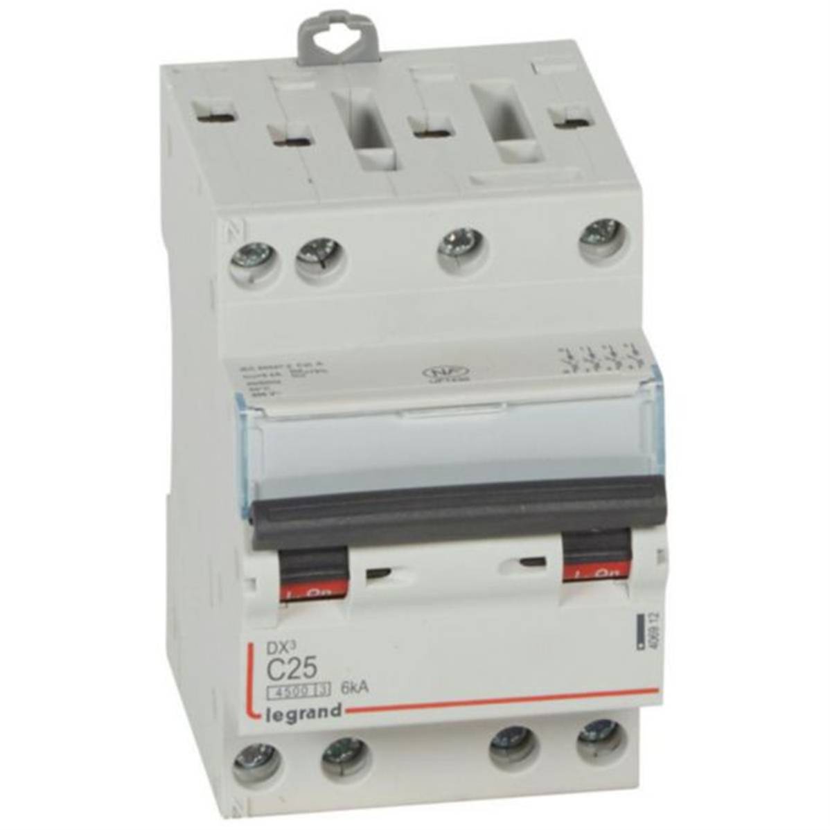 Disjoncteur DX³4500 6kA arrivée haute et sortie basse par borne à vis - tétrapolaire 400V~ 25A courbe C - 3 modules - Legrand 406912