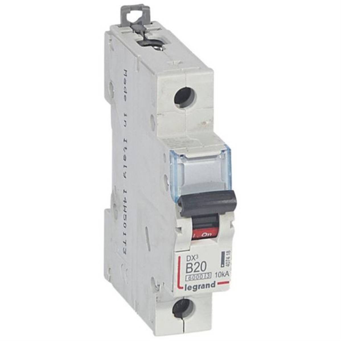 Disjoncteur DX³6000 10kA arrivée haute et départ bas à vis 1P 230V~ à 400V~ - 20A - courbe B - 1 module - Legrand 407418
