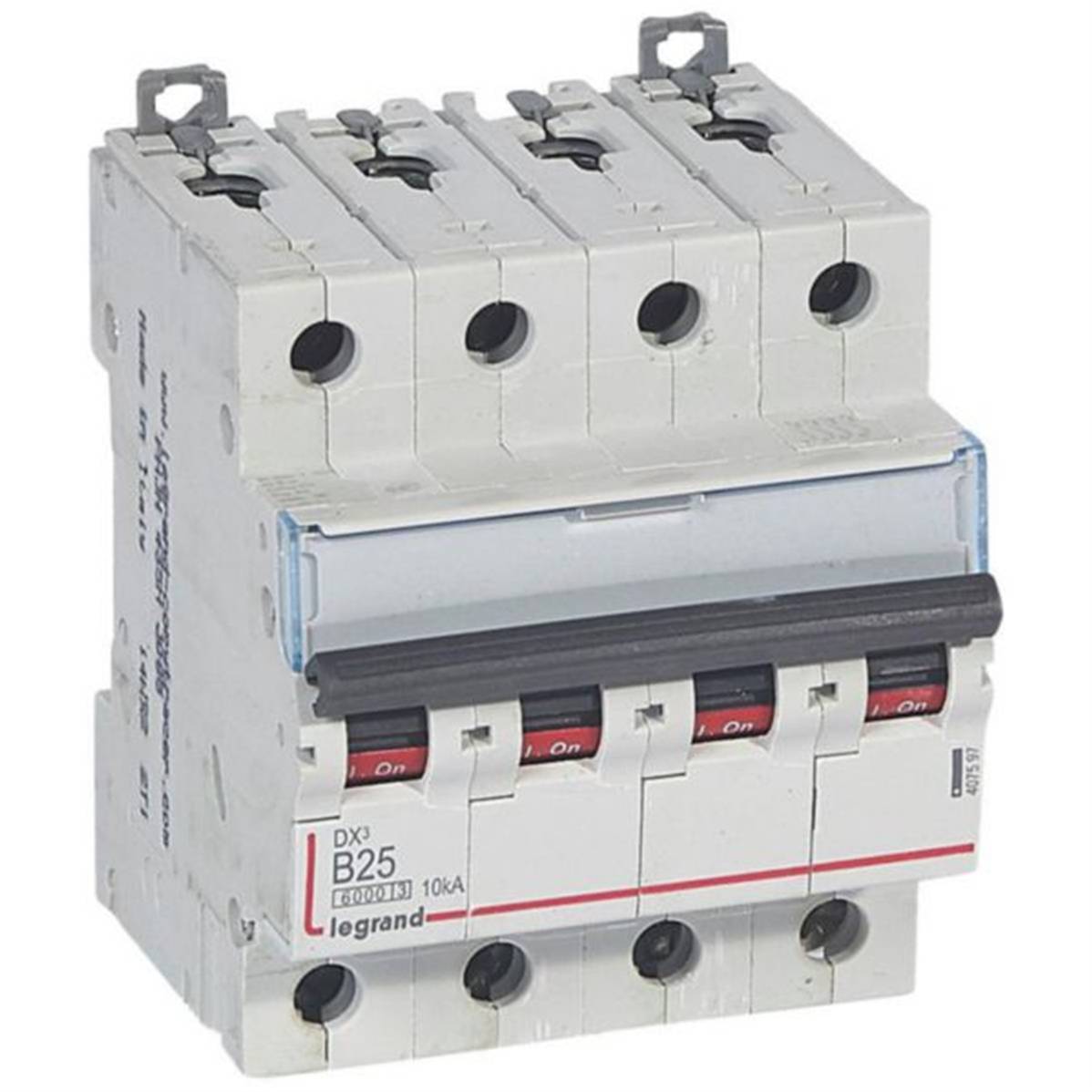 Disjoncteur DX³6000 10kA arrivée haute et départ bas à vis 4P 400V~ - 25A - courbe B - 4 modules - Legrand 407597
