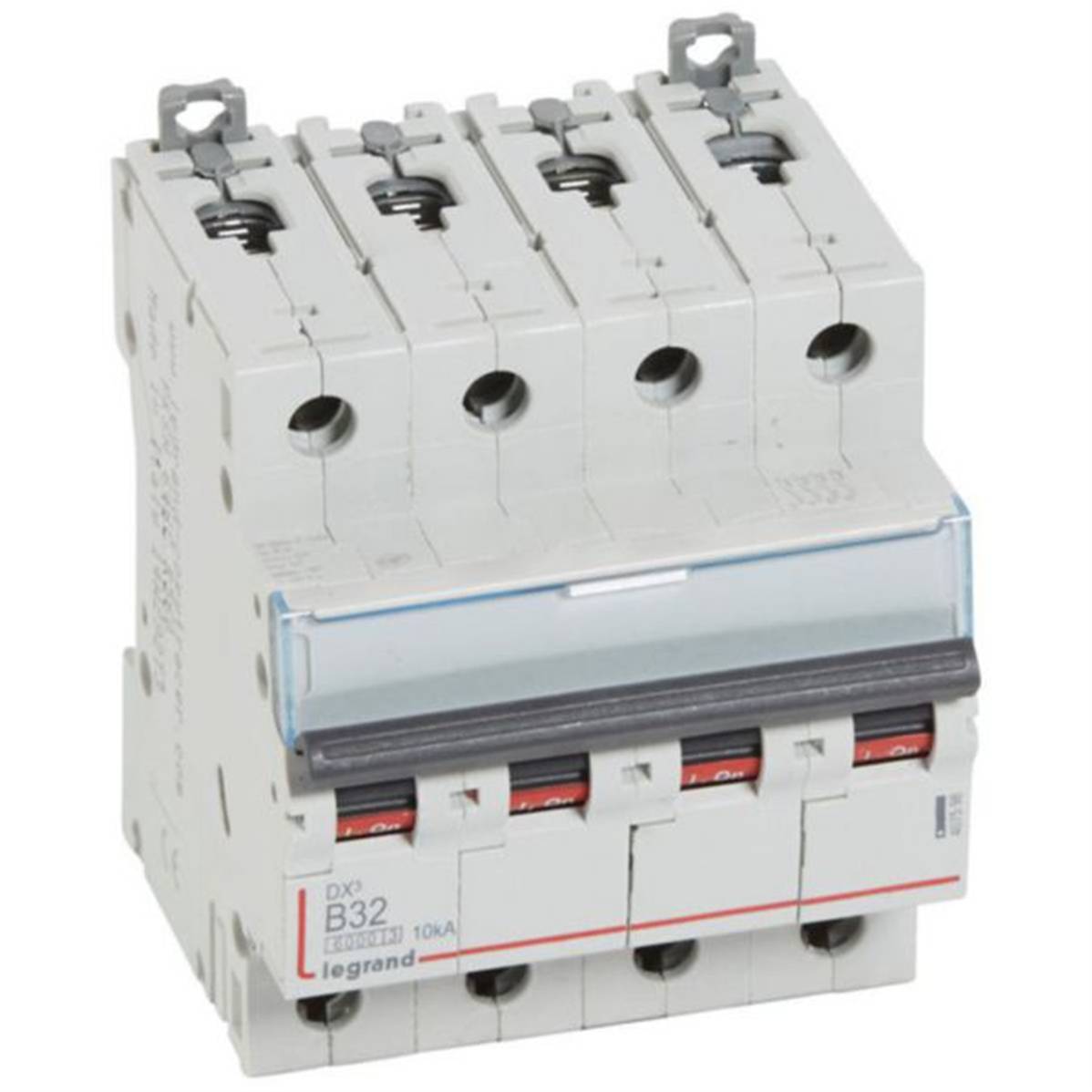 Disjoncteur DX³6000 10kA arrivée haute et départ bas à vis 4P 400V~ - 32A - courbe B - 4 modules - Legrand 407598