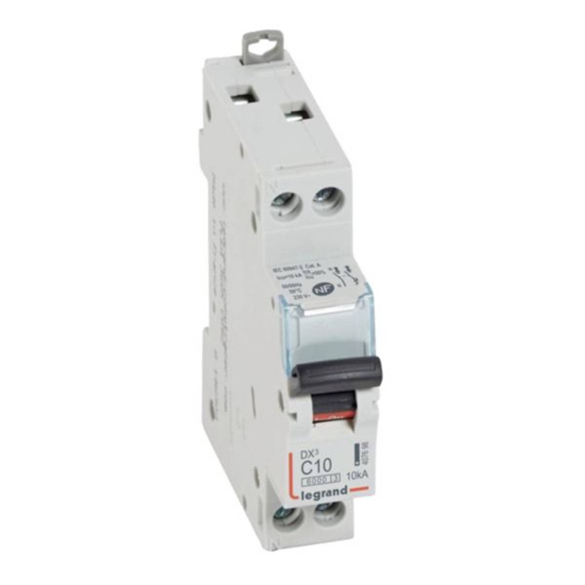 Disjoncteur DX³6000 10kA arrivée haute et départ bas à vis U+N 230V~ - 10A - courbe C - 1 module - Legrand 407698