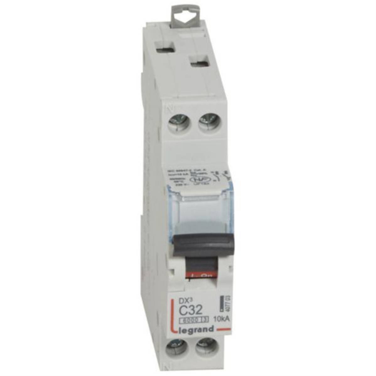 Disjoncteur DX³6000 10kA arrivée haute et départ bas à vis U+N 230V~ - 32A - courbe C - 1 module - Legrand 407703