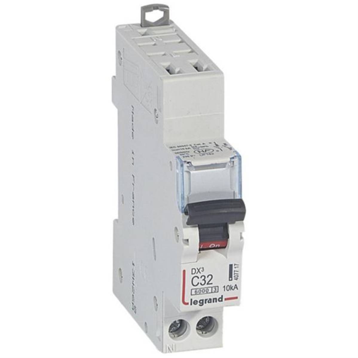 Disjoncteur DX³6000 10kA arrivée haute automatique et départ bas à vis U+N - 230V~ - 32A - courbe C - 1 module - Legrand 407717