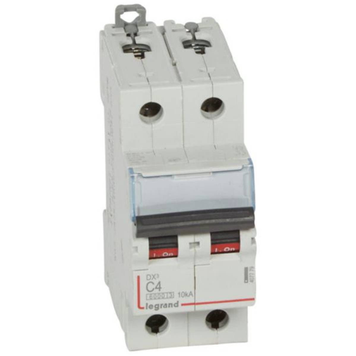 Disjoncteur DX³6000 10kA arrivée haute et départ bas à vis 2P 230V~ à 400V~ - 4A - courbe C - 2 modules - Legrand 407779