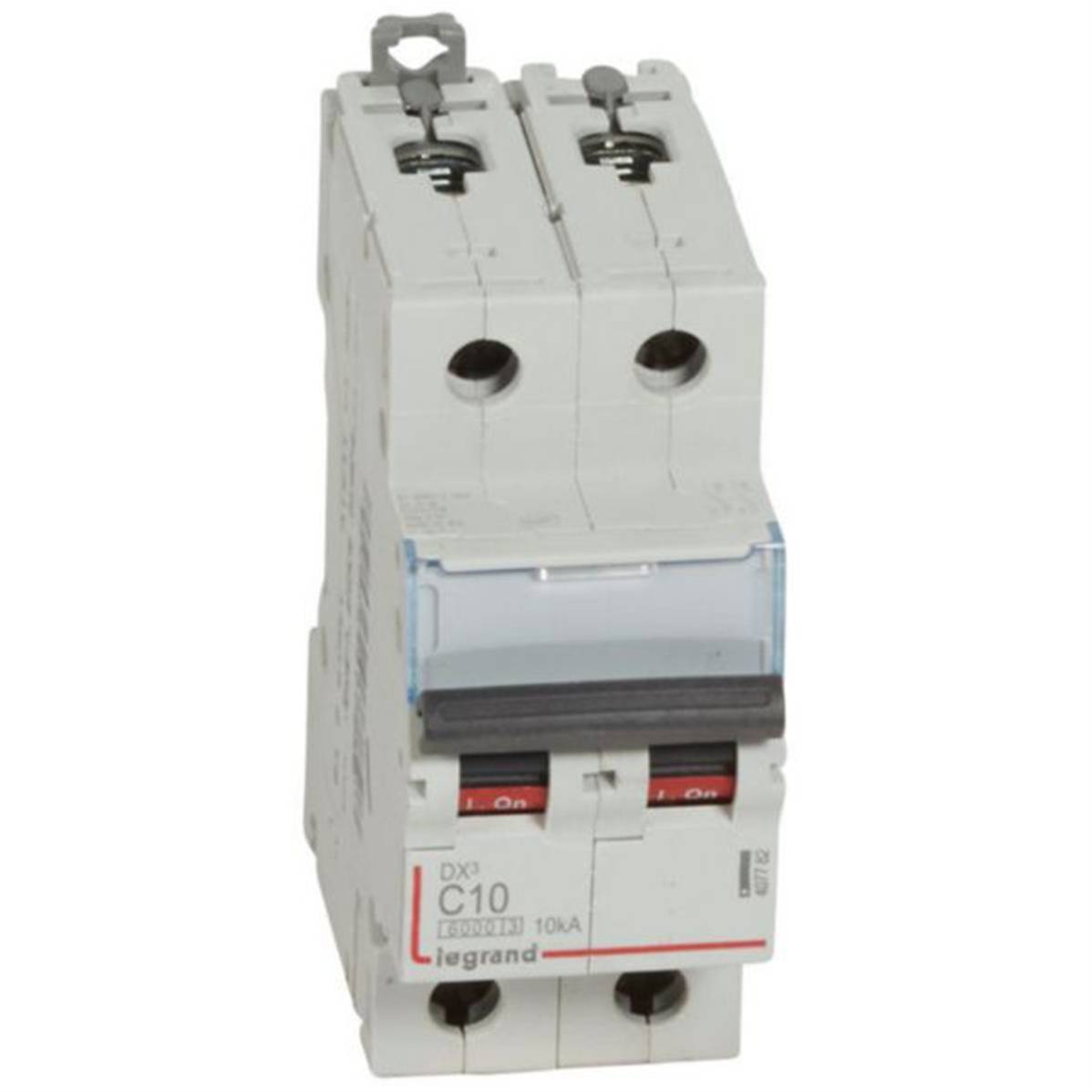 Disjoncteur DX³6000 10kA arrivée haute et départ bas à vis 2P 230V~ à 400V~ - 10A - courbe C - 2 modules - Legrand 407782
