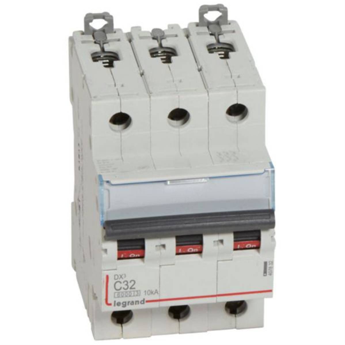 Disjoncteur DX³6000 10kA arrivée haute et départ bas à vis 3P 400V~ - 32A - courbe C - pour peigne HX³ traditionnel - Legrand 407832
