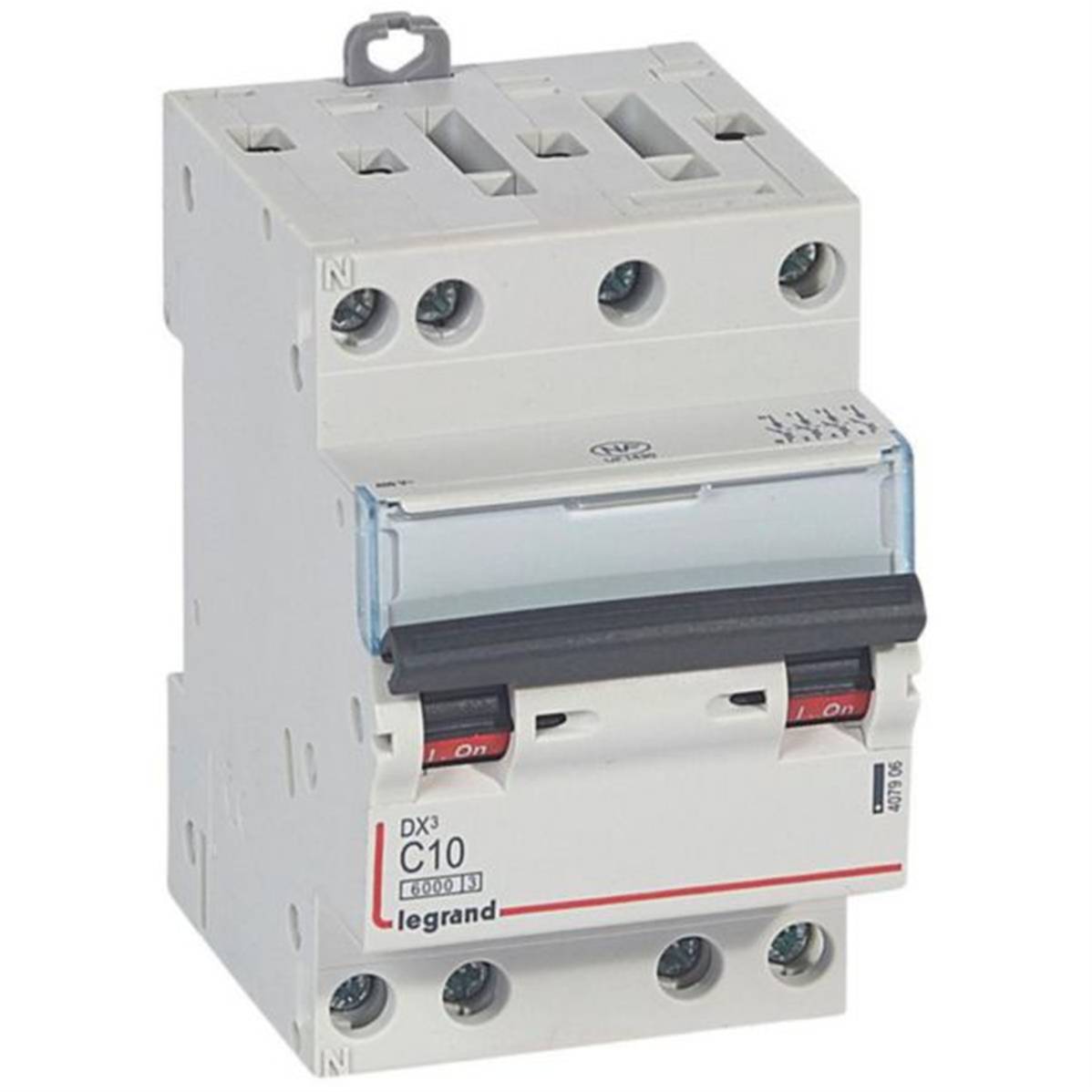 Disjoncteur DX³6000 10kA arrivée haute et départ bas à vis 4P 400V~ - 10A - courbe C - pour peigne HX³ optimisé - Legrand 407906