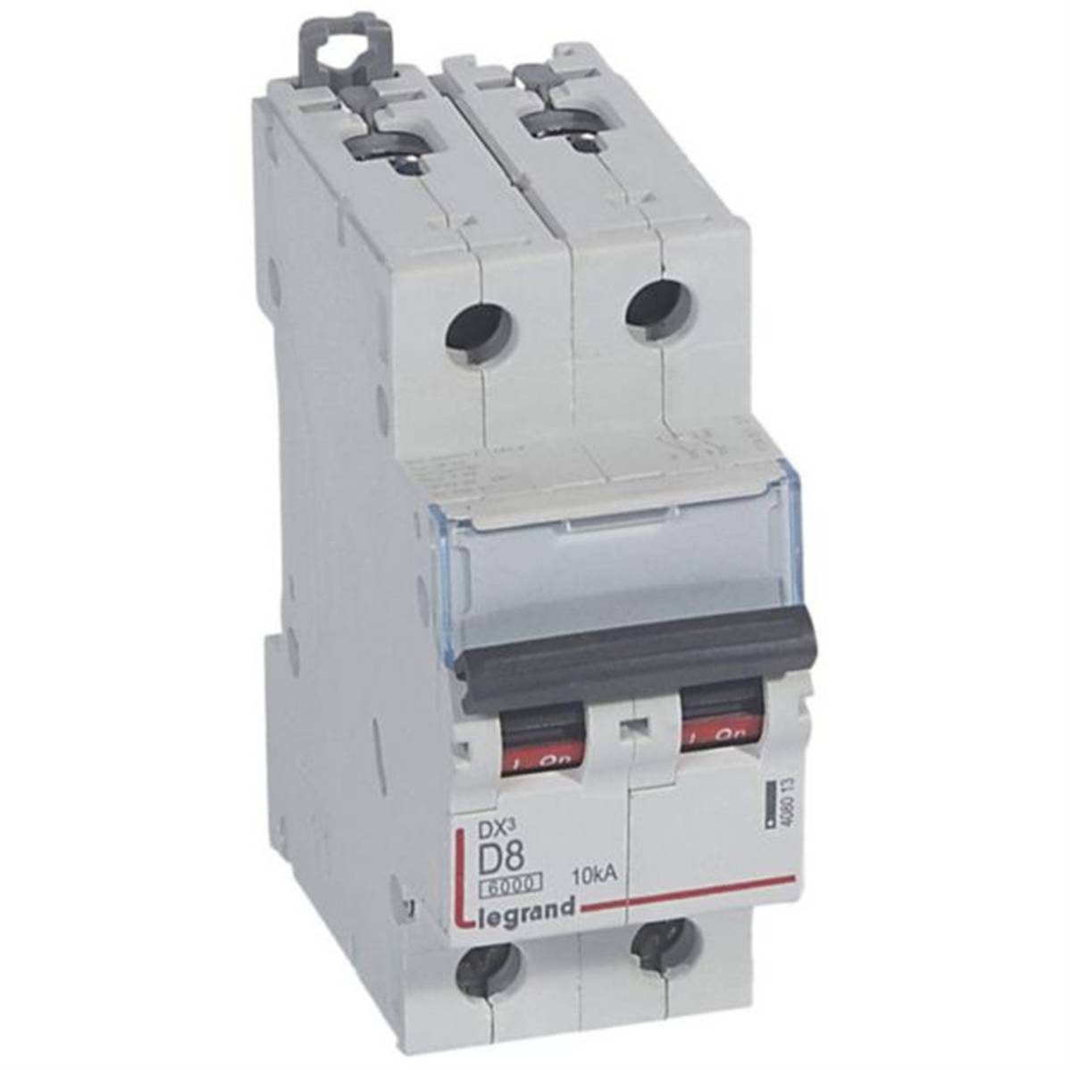 Disjoncteur DX³6000 10kA arrivée haute et départ bas à vis 2P 230V~ à 400V~ - 8A - courbe D - 2 modules - Legrand 408013