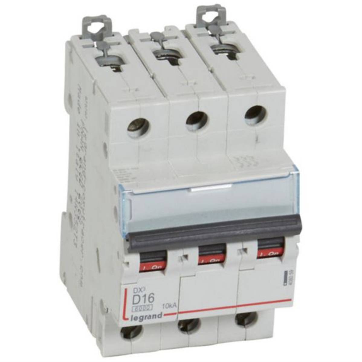Disjoncteur DX³6000 10kA arrivée haute et départ bas à vis 3P 400~ - 16A - courbe D - pour peigne HX³ traditionnel - Legrand 408059