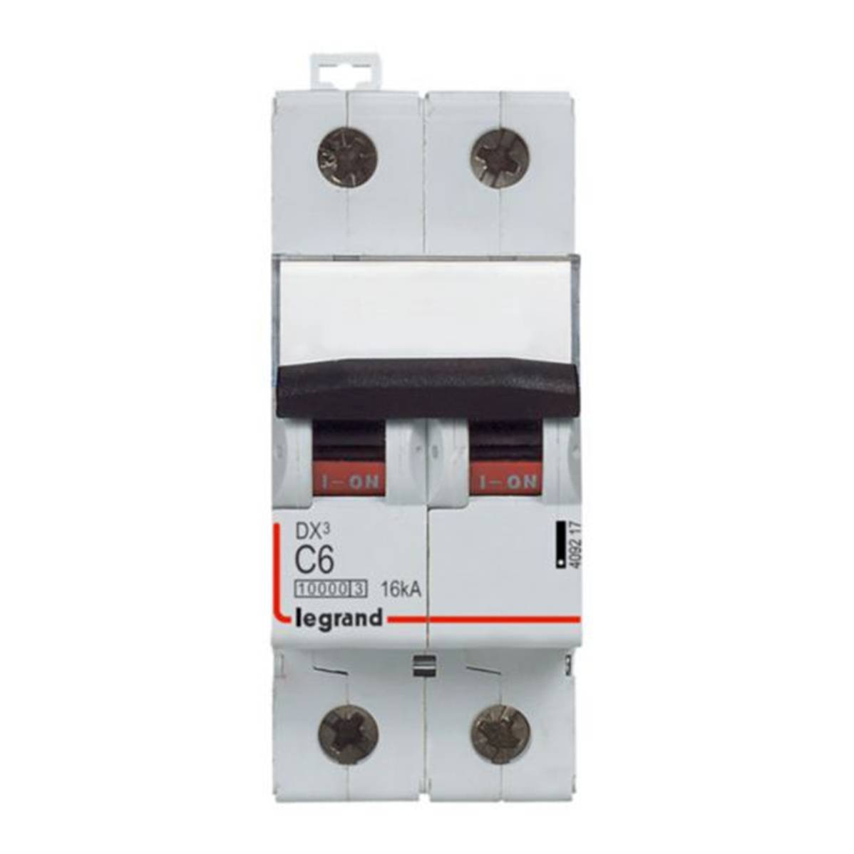 Disjoncteur DX³10000 16kA arrivée haute et départ bas à vis 2P 230V~ à 400V~ - 6A - courbe C - 2 modules - Legrand 409217