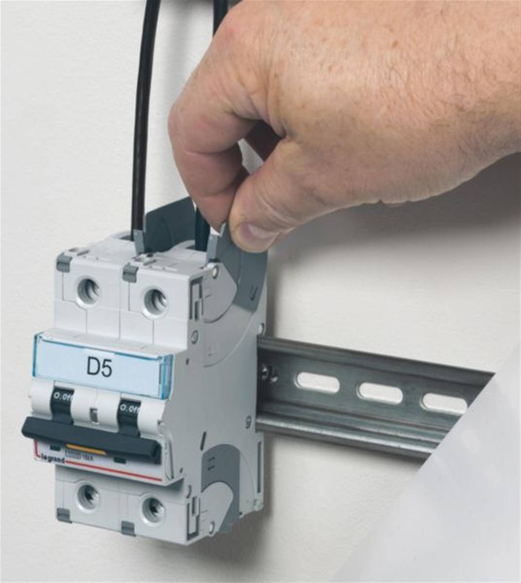 Equipé de 2 griffes d’accrochage, permettant de remplacer le disjoncteur au milieu d’une rangée peignée sans déconnecter les autres produits