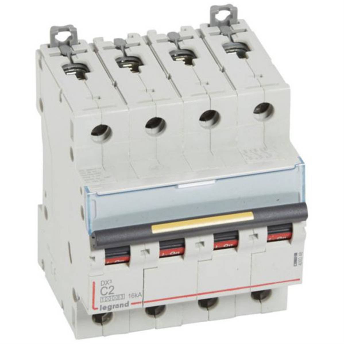 Disjoncteur DX³10000 16kA arrivée haute et départ bas à vis 4P - 400V~ - 2A - courbe C - 4 modules - Legrand 409348