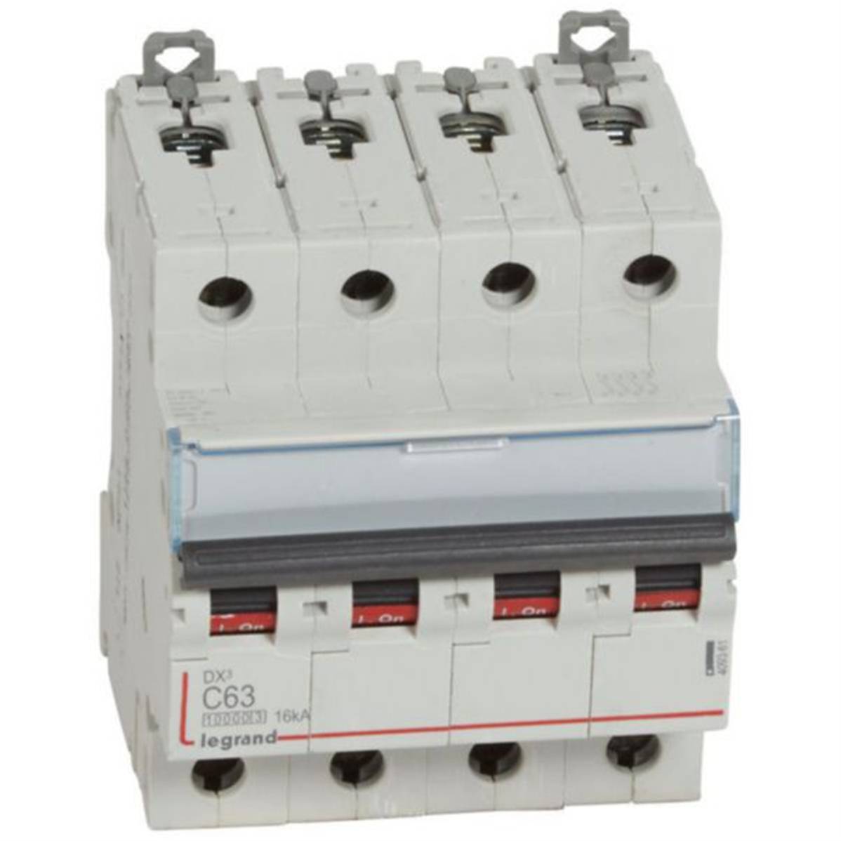 Disjoncteur DX³10000 16kA arrivée haute et départ bas à vis 4P - 400V~ - 63A - courbe C - 4 modules - Legrand 409361