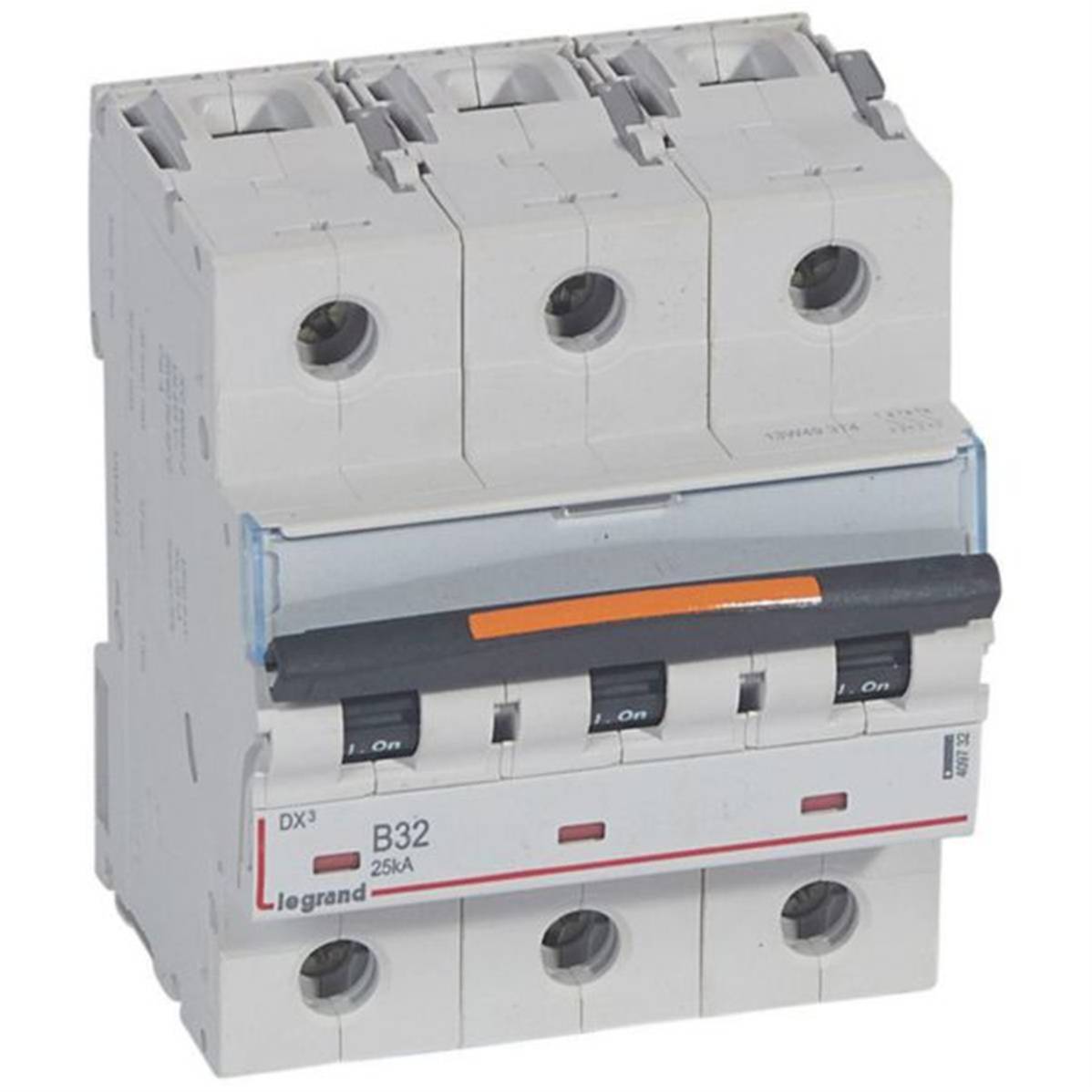 Disjoncteur DX³ 25kA arrivée haute et départ bas à vis 3P 400V~ - 32A - courbe B - 4,5 modules - Legrand 409732