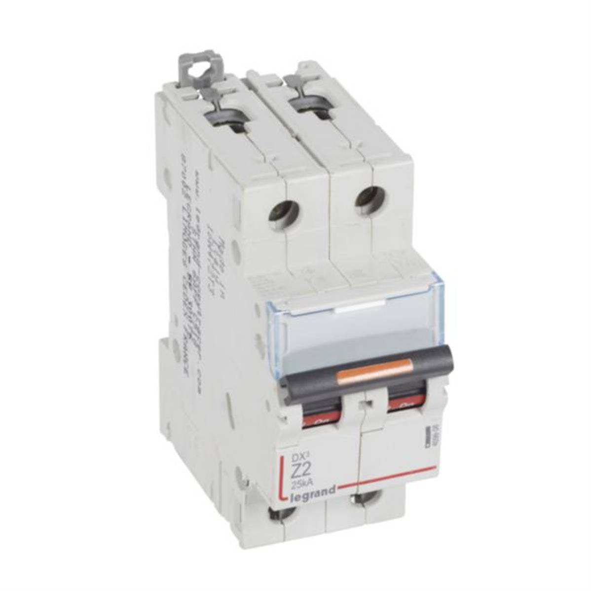 Disjoncteur DX³ 25kA arrivée haute et départ bas à vis 2P 230V~ à 400V~ - 2A - courbe Z - 2 modules - Legrand 409908