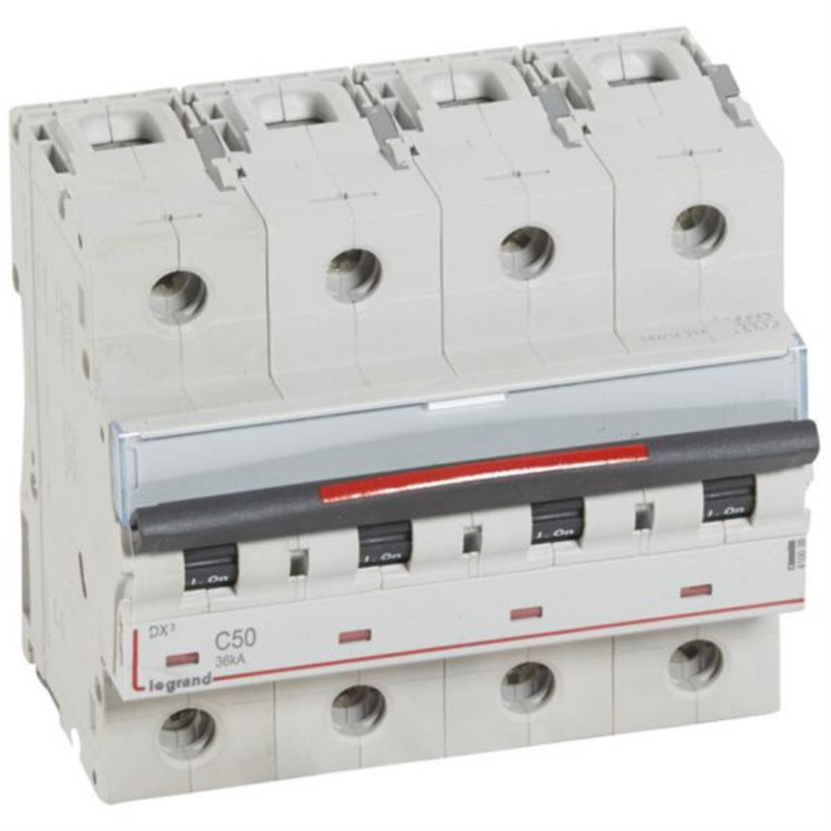 Disjoncteur DX³ 36kA arrivée haute et départ bas à vis 4P 400V~ - 50A - courbe C - 6 modules - Legrand 410039