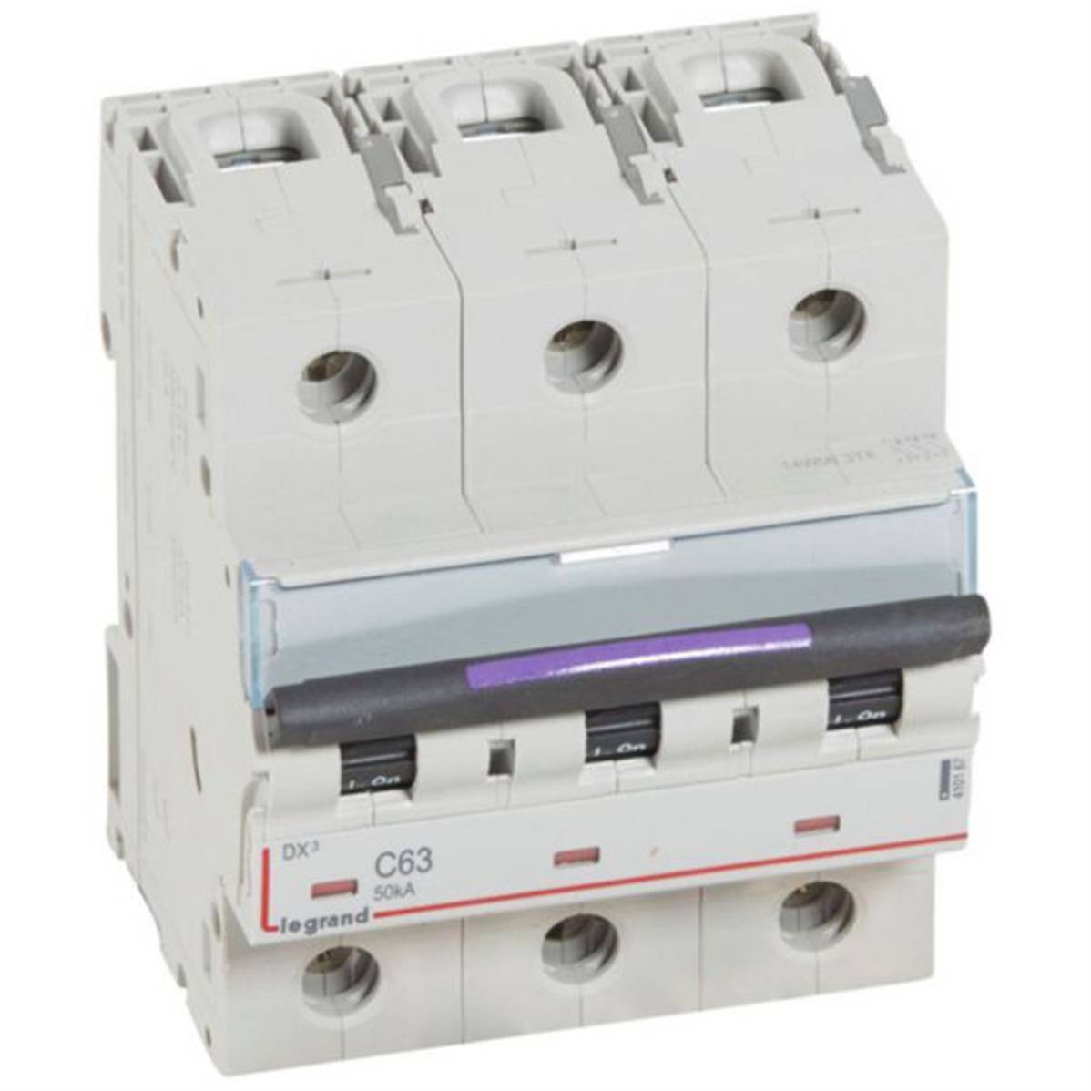 Disjoncteur DX³ 50kA arrivée haute et départ bas à vis 3P 400V~ - 63A - courbe C - 4,5 modules - Legrand 410167