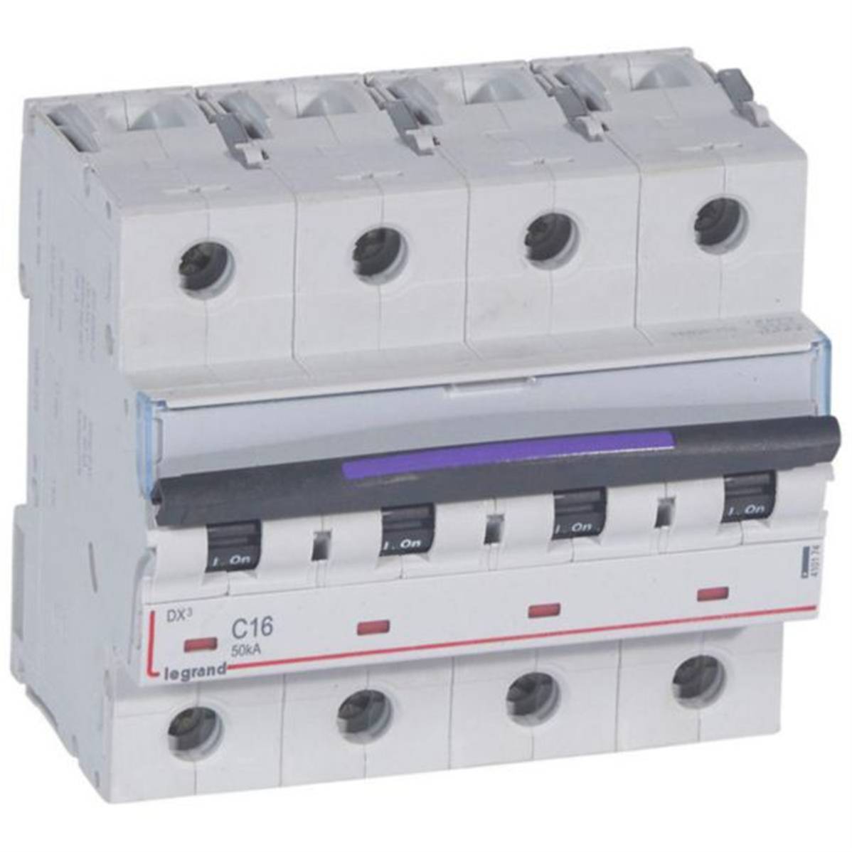 Disjoncteur DX³ 50kA arrivée haute et départ bas à vis 4P 400V~ - 16A - courbe C - 6 modules - Legrand 410174