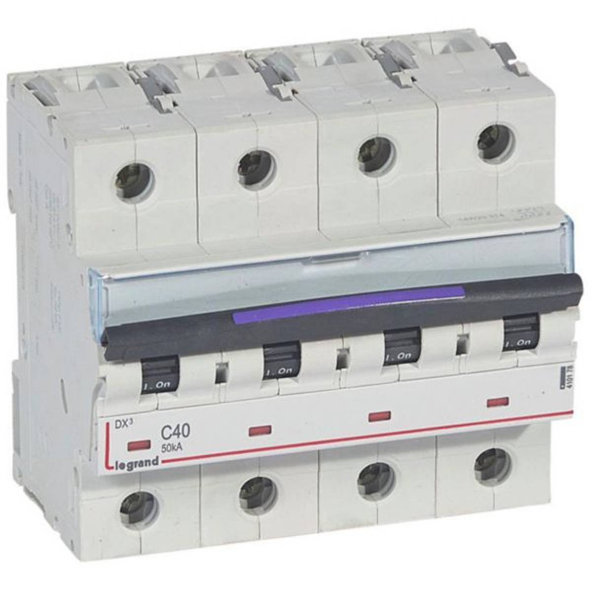Disjoncteur DX³ 50kA arrivée haute et départ bas à vis 4P 400V~ - 40A - courbe C - 6 modules - Legrand 410178