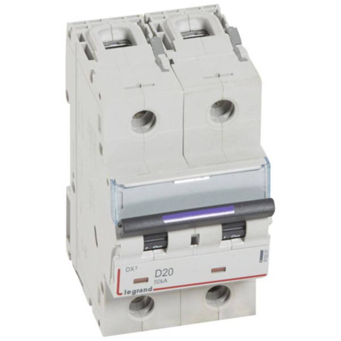 Disjoncteur DX³ 50kA arrivée haute et départ bas à vis 2P 230V~ à 400V~ - 20A - courbe D - 3 modules - Legrand 410201