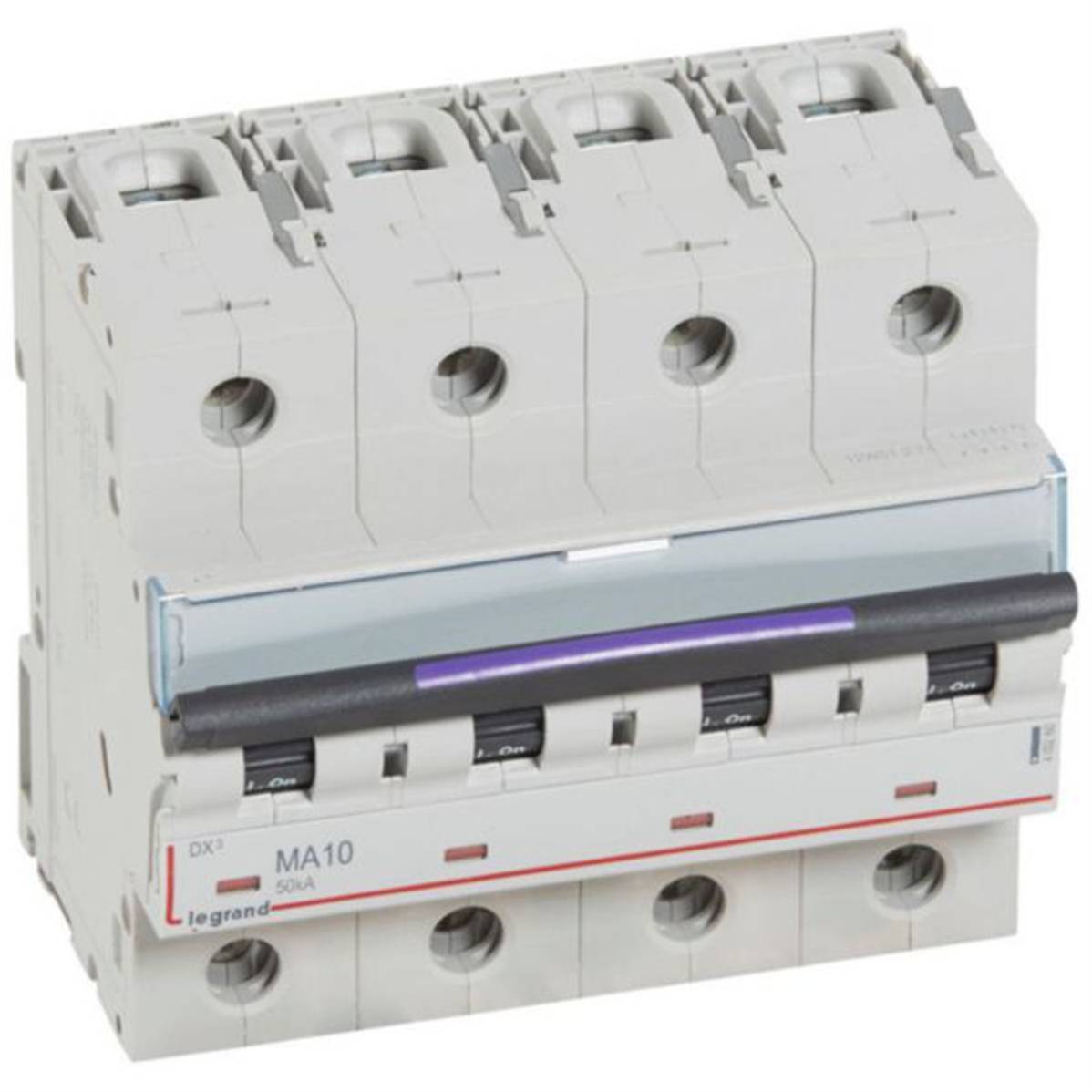Disjoncteur magnétique seul DX³-M 50kA arrivée haute et départ bas à vis 4P 400V~ - 10A - 6 modules - Legrand 410260