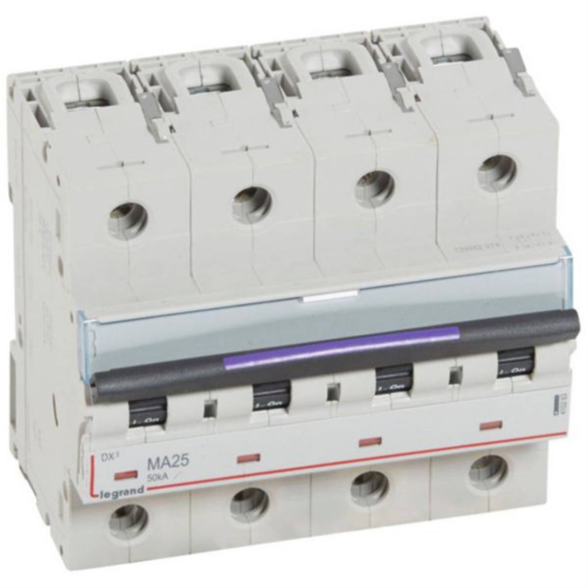 Disjoncteur magnétique seul DX³-M 50kA arrivée haute et départ bas à vis 4P 400V~ - 25A - 6 modules - Legrand 410263