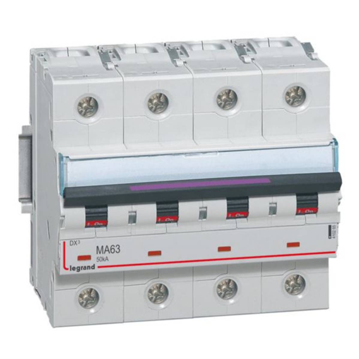 Disjoncteur magnétique seul DX³-M 50kA arrivée haute et départ bas à vis 4P 400V~ - 63A - 6 modules - Legrand 410265