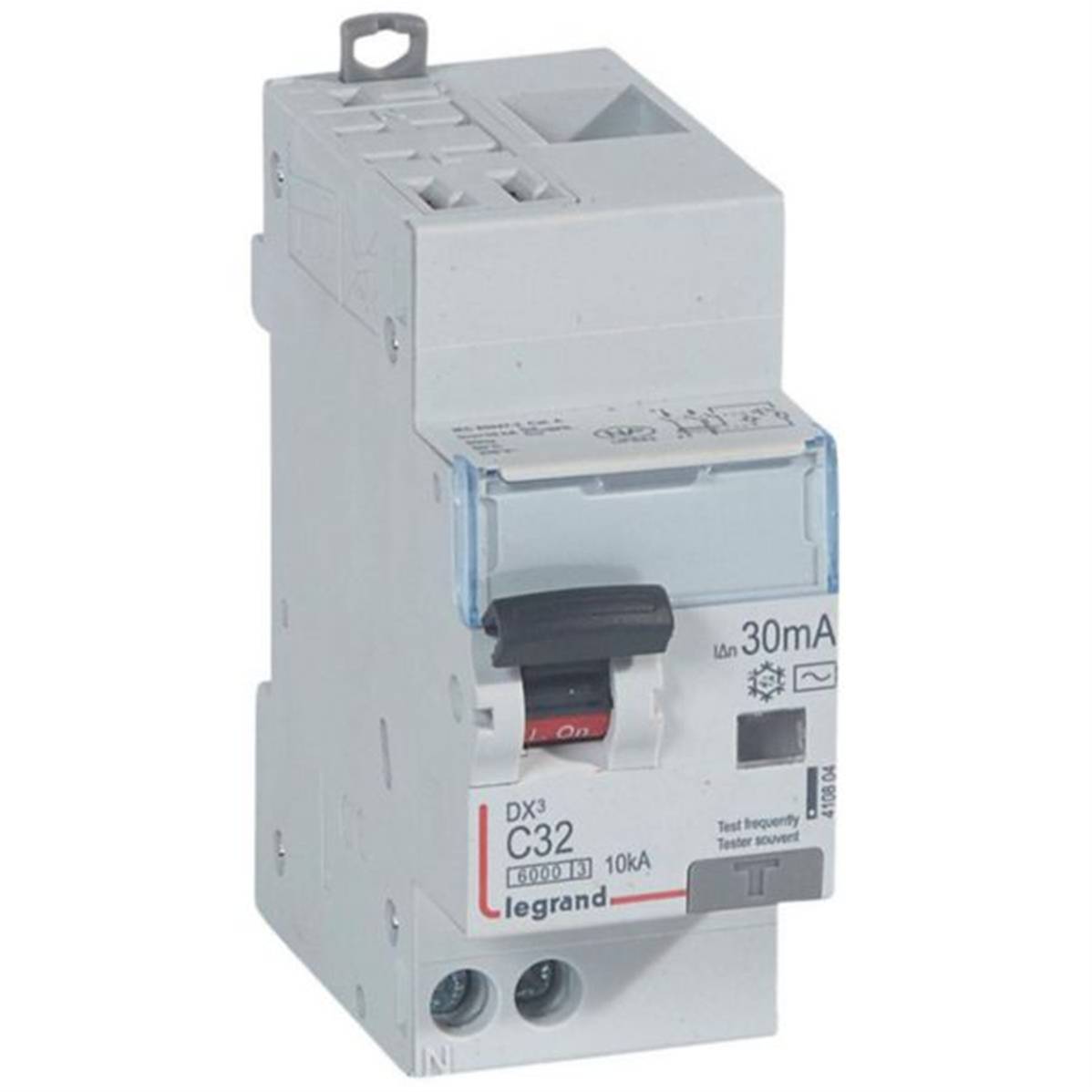 Disjoncteur différentiel monobloc DX³6000 10kA arrivée haute automatique départ bas vis U+N 230V~ - 32A - typeAC 30mA - Legrand 410804