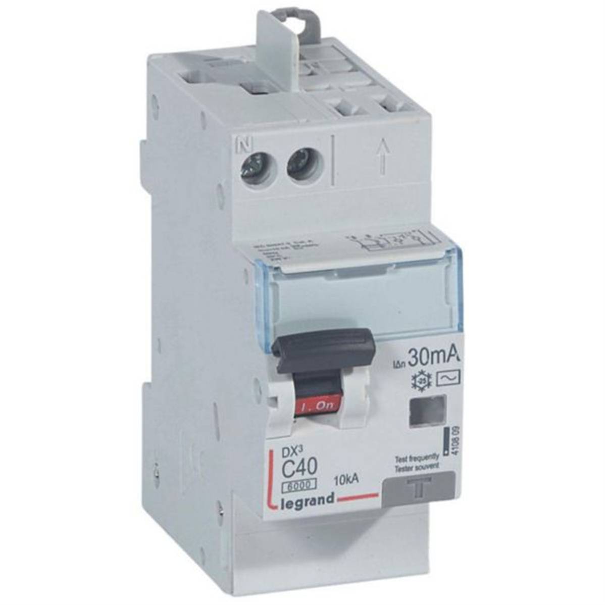 Disjoncteur différentiel monobloc DX³6000 10kA arrivée haute vis départ haut automatique U+N 230V~ - 40A - typeAC 30mA - Legrand 410809