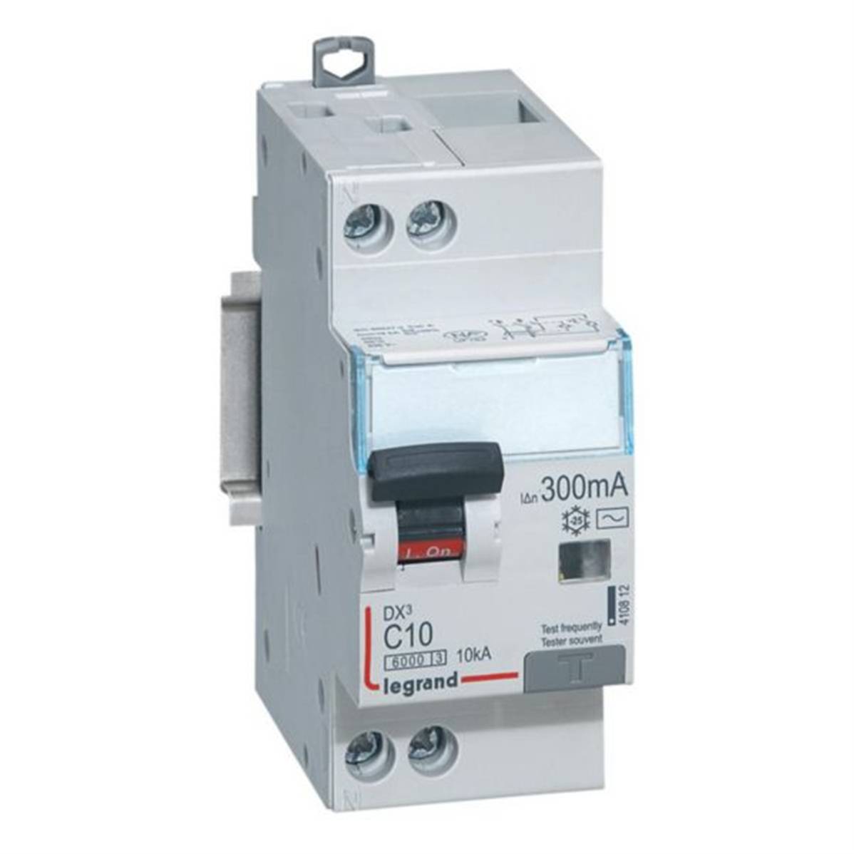Disjoncteur différentiel monobloc DX³6000 10kA arrivée haute et départ bas à vis U+N 230V~ - 10A - typeAC 300mA - Legrand 410812