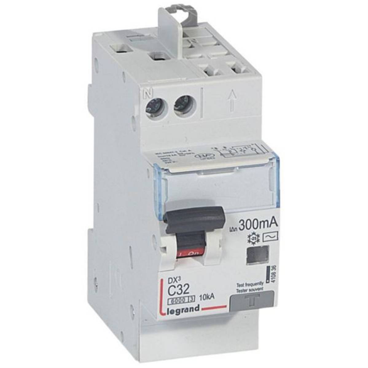 Disjoncteur différentiel monobloc DX³6000 10kA arrivée haute vis départ haut automatique U+N 230V~ - 32A - typeAC 300mA - Legrand 410836