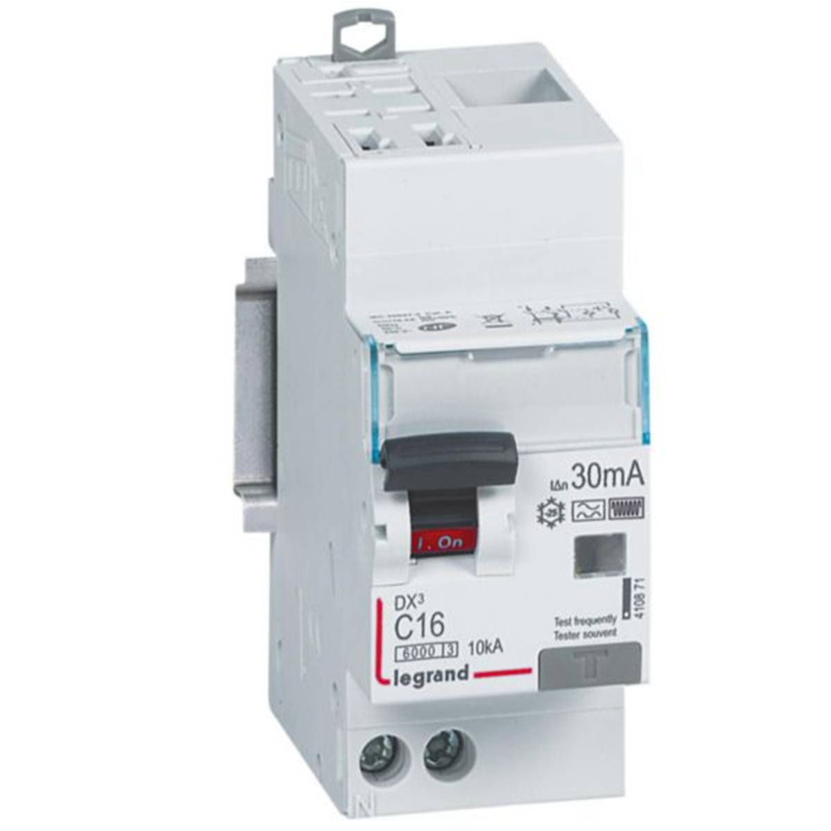 Disjoncteur différentiel monobloc DX³6000 10kA arrivée haute automatique départ bas vis U+N 230V~ - 16A - typeF 30mA - Legrand 410871