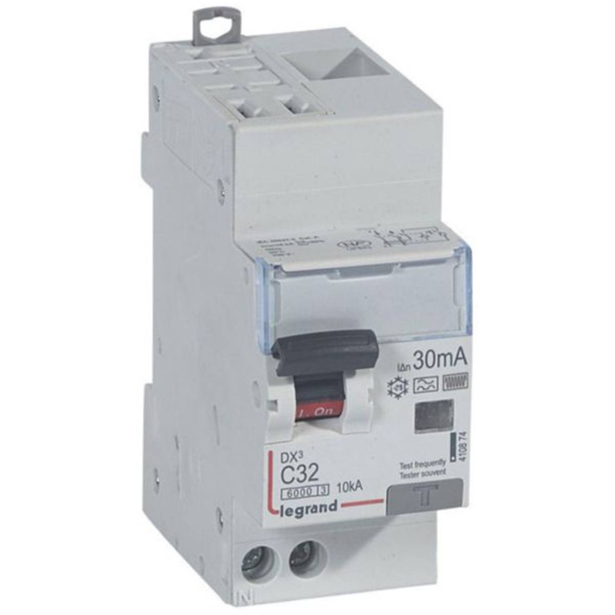 Disjoncteur différentiel monobloc DX³6000 10kA arrivée haute automatique départ bas vis U+N 230V~ - 32A - typeF 30mA - Legrand 410874