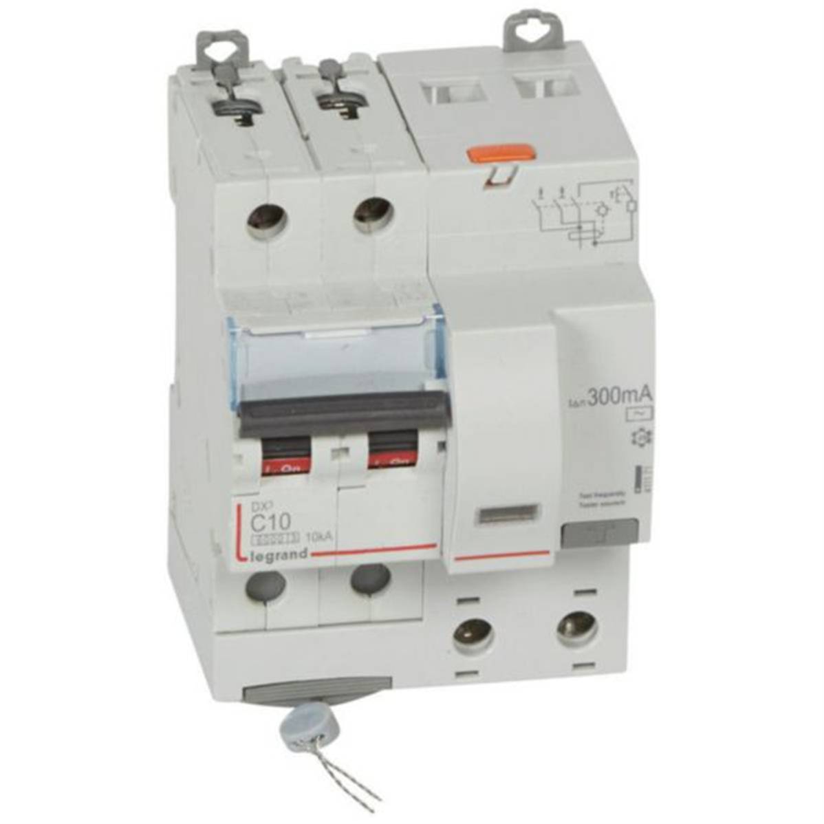 Disjoncteur différentiel monobloc DX³6000 10kA arrivée haute et départ bas à vis 2P 230V~ à 400V~ - 10A - typeAC 300mA - Legrand 411171