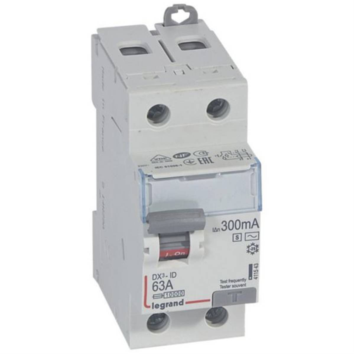 Interrupteur différentiel DX³-ID arrivée haute et départ bas à vis - 2P 230V~ 100A typeAC 300mA sélectif 2 modules - Legrand 411543