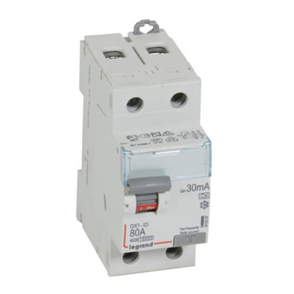 Interrupteur différentiel DX³-ID arrivée haute et départ bas à vis - 2P 230V~ 80A typeA 30mA - 2 modules - Legrand 411557