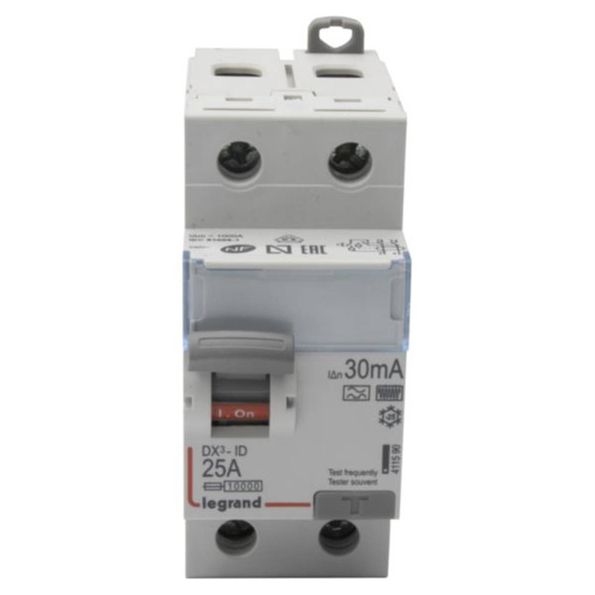 Interrupteur différentiel DX³-ID arrivée haute et départ bas à vis - 2P 230V~ 25A typeF 30mA - 2 modules - Legrand 411590