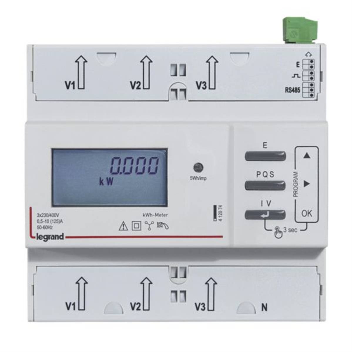 Compteur modulaire triphasé EMDX³ non MID raccordement direct 125A - 6 modules - avec sortie à impulsions et RS485 - Legrand 412074
