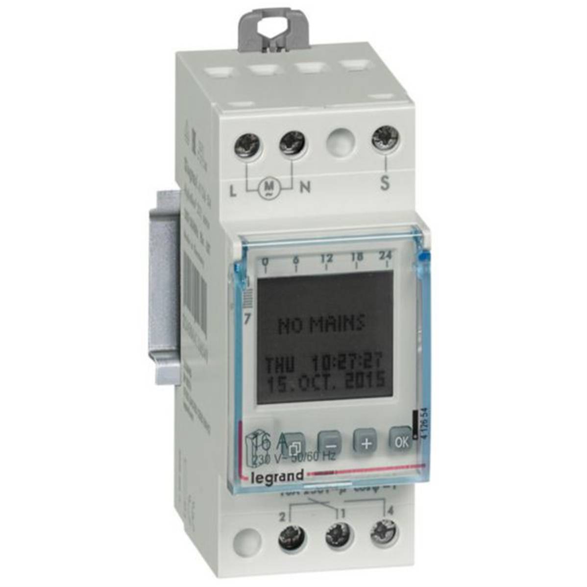 Interrupteur horaire digital modulaire programmable pour illuminations extérieures - 1 sortie 16A 250V~ - 2 modules - Legrand 412654